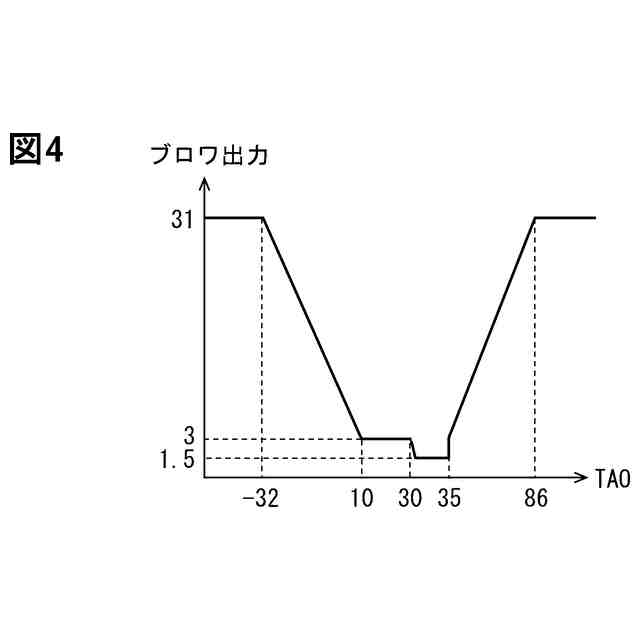 目標吹出温度とブロワ出力との関係を示す制御特性図である。