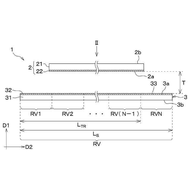 前記ミラーまたは前記ハーフミラーのなす平面に対する法線方向を厚み方向(D1)とし、前記平面に沿った方向であって、前記ハーフミラーのうち前記入射端部から反対側の終端部(3B)に向かう方向を導光方向(D2)とし、前記ミラーまたは前記ハーフミラーに入射する光の進行方向と前記厚み方向とのなす角度をθとし、前記ミラーと前記ハーフミラーとの前記厚み方向における距離をTとし、前記ミラーと前記ハーフミラーとの間における光の最大の往復回数をN-1(N:2以上の整数)とし、前記透過反射層の前記導光方向における長さL