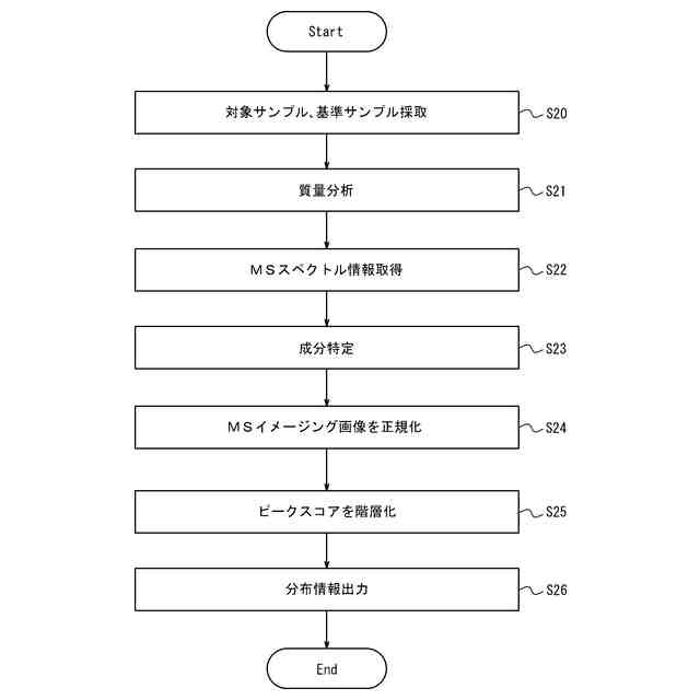 前記塗布用組成物に含まれる所定の成分に対応する前記第1の質量スペクトルにおける強度の前記第1のサンプルにおける分布を示す分布情報を出力する制御部と、を有する。