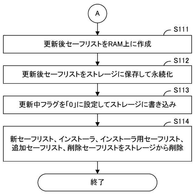 前記第1のフラグが前記補助記憶部に保存されている場合には、前記第2のリストを前記取得部が取得したときに、前記中間リストの作成及び前記記憶部への保存を行わずに、前記第1のアプリから前記第2のアプリへの前記更新と、前記更新後リストの前記記憶部への保存とを行う、