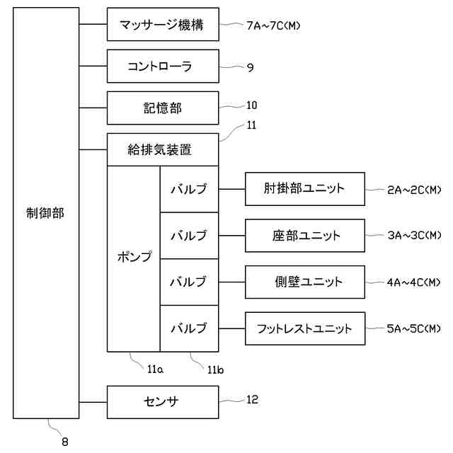 また、前記制御部は、複数ある前記第2マッサージユニットのうち、前記身体支持部に取り付けられた前記第2マッサージユニットに対応して、前記記憶部に記憶されたマッサージプログラムを変更することが好ましい。