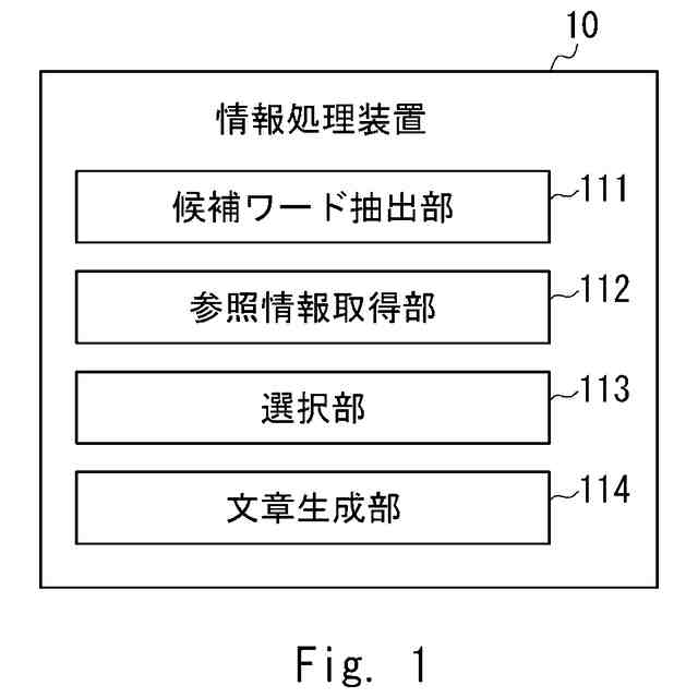 【解決手段】情報処理装置は、依頼者の求人票を記載するための求人情報から要約文を生成するための複数の候補ワードを抽出する候補ワード抽出部と、依頼者による求人情報に関連する参照情報を取得する参照情報取得部と、参照情報に含まれるワードとの関係に基づいて候補ワードから選択ワードを選択する選択部と、求人票の要約文として選択ワードを含む文章を生成して提示する文章生成部と、を備える。