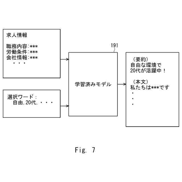特許文献3によれば、情報処理システムは、プロセッサを用いて、求人者の求める人材条件を受け付け、それに関連する情報を取得し、取得した情報を人工知能に入力して求人票を出力し、さらに人工知能から追加の人材条件を取得する。