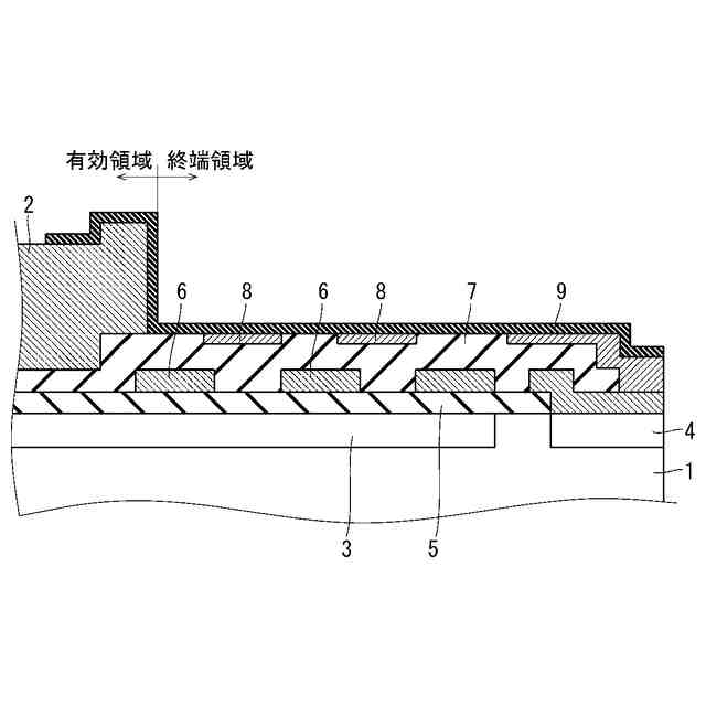 主電流が流れる有効領域と前記有効領域の周囲に設けられた終端領域とを含む半導体基板と、