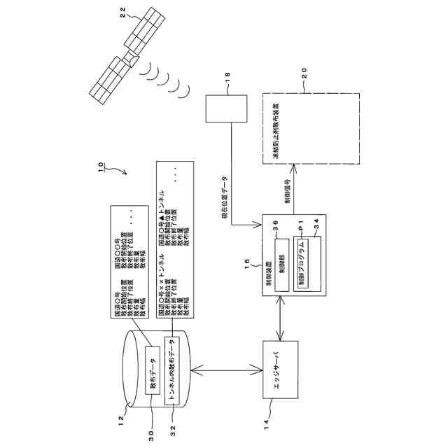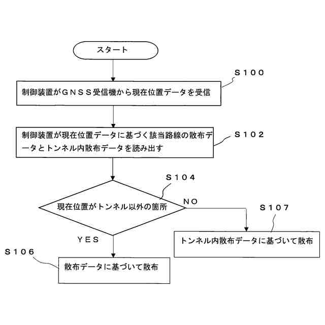 しかしながら、従来の技術ではトンネル内ではGPSの受信ができないため、現在位置に基づいた自動散布の制御ができず、トンネル内においては手動で凍結防止剤を散布せざるを得ないという課題がある。