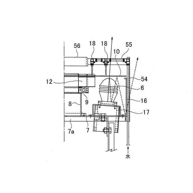 更に特許文献2において、トンネル壁面までの距離を計測する距離計測器を備えた吹付けノズル装置において、吹付けノズルの基端部に距離計測器を設置するためのベース板を備えるとともに、このベース板の上面に周方向に適宜の間隔で複数の距離計測器を設置し、前記ベース板から離隔して前記複数の距離計測器を覆うとともに、前記距離計測器からの電波を透過する材料によって形成された円板状の被覆板を中心軸周りに回転可能に設置し、前記被覆板を回転させる回転手段を備え、かつ前記被覆板の外面に付着したコンクリートを除去するための洗浄水噴射ノズルと、前記被覆板の外面に付着したコンクリートを掻き取るためのスクレーパーが設けられた距離計測器を備えた吹付けノズル装置を提案した。