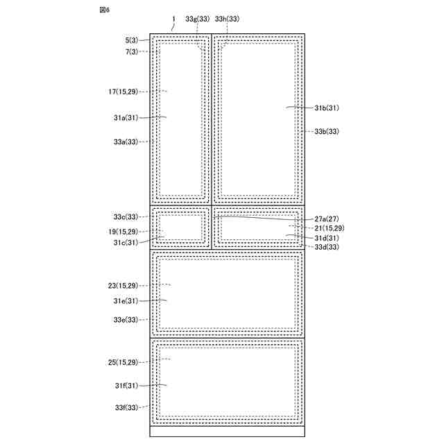 真空断熱材の熱伝達率は、発泡断熱材の熱伝達率のおよそ1/10程度とされる。これにより、真空断熱材と発泡断熱材とを組み合わせることによって、熱の侵入量を抑制しながら、断熱厚さを抑えることができ、冷蔵庫の冷却運転時における消費電力の抑制と、貯蔵室の貯蔵容積の増加との両立を図ることができる。このため、現在の冷蔵庫においては、真空断熱材は必要不可欠な重要な機能部材となっている。