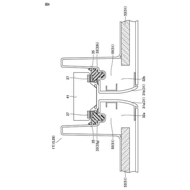 同実施の形態において、ガスケットとセンターピラーとの配置構造を示す部分断面である。
