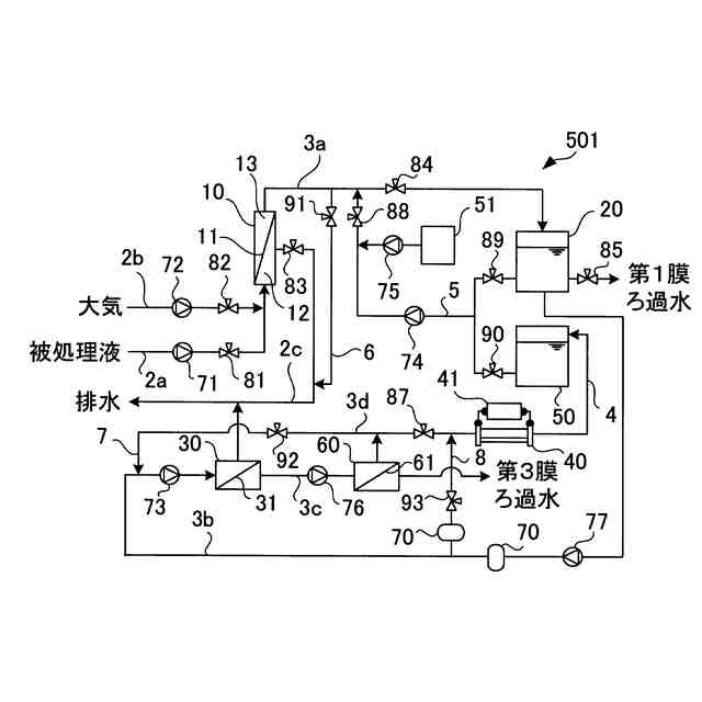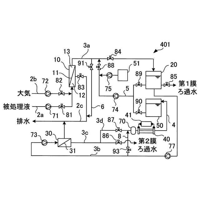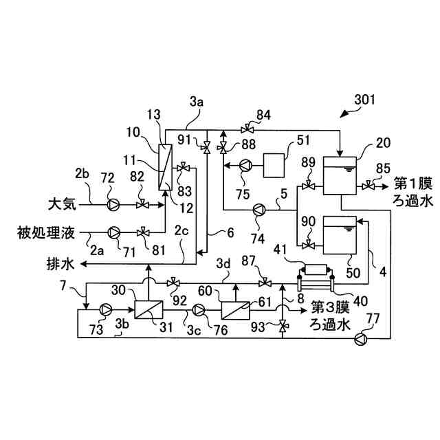 精密ろ過膜または限外ろ過膜を備える第1膜モジュールと、