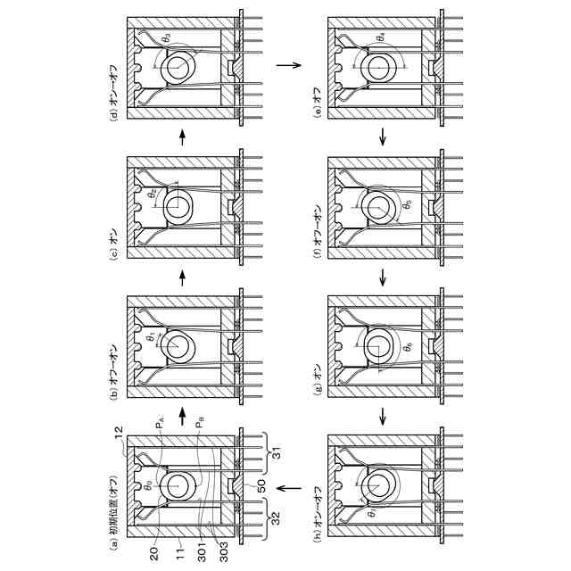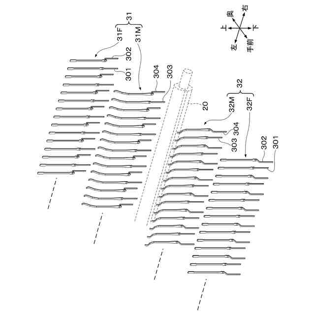 このような目的達成のため、本発明に係る多極スイッチは、ケースと、前記ケースに並んで配設された複数の固定端子(例えば、実施形態における直線固定端子301、屈曲固定端子302)によって構成され、前記複数の固定端子にそれぞれ設けられた固定接点が前記ケース内に一列に並ぶように構成された固定端子群(例えば、実施形態における第1固定端子群31F、第2固定端子群32F)と、前記ケースに並んで配設された複数の可動端子(例えば、実施形態における直線可動端子303、屈曲可動端子304)によって構成され、前記複数の可動端子にそれぞれ設けられた可動接点が前記固定接点と接触可能に対向して一列に並ぶように構成された可動端子群(例えば、実施形態における第1可動端子群31M、第2可動端子群32M)と、前記可動端子群の各可動接点を、対向する前記固定端子群の各固定接点に対して一斉に接触または非接触させるオン/オフ切替部(例えば、実施形態におけるカムシャフト20、カップリング22、直流モータ40および制御回路60)とを備える。