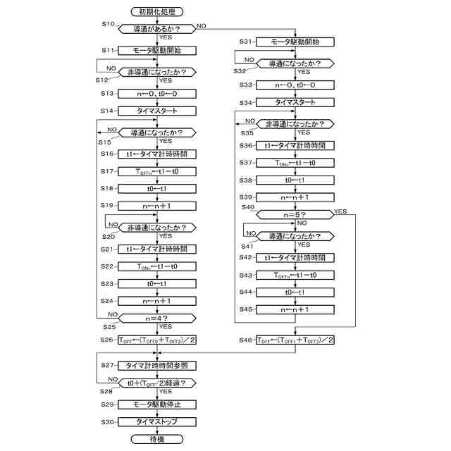 上記の多極スイッチにおいて、前記オン/オフ切替部は、前記可動端子が並べられている方向に延伸する回転軸を有し、回転することによって前記可動端子群の各可動接点を、対向する前記固定端子の各固定接点に接触または非接触させるカムシャフトと、前記カムシャフトを回転させる電気モータ(例えば、実施形態における直流モータ40)と、前記電気モータを駆動制御することによって前記固定接点に対して前記可動接点を接触または非接触させるオン/オフ制御部(例えば、実施形態における制御回路60)とを備えることが好ましい。