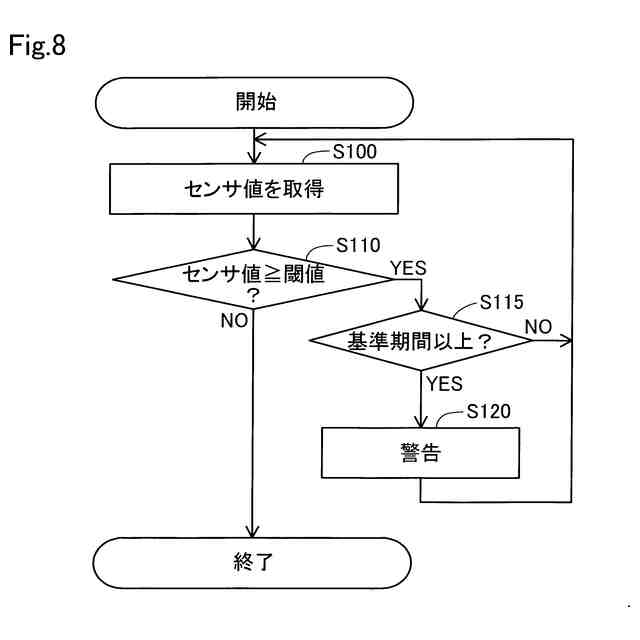 (7)上記形態において、前記制御部は、予め定められた基準期間以上、前記センサ値が予め定められた閾値以上である場合に、前記寄りかかりを検知してもよい。この形態によれば、センサ値が閾値以上である時間の長さを加味して、寄りかかりを検知できる。