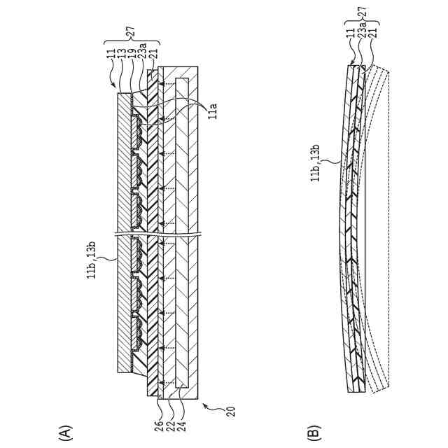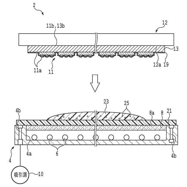 この様に、紫外線硬化樹脂を介して半導体基板とキャリアとを積層することで、半導体基板の表面に設けられたデバイス、バンプ等の凹凸を紫外線硬化樹脂で吸収し、且つ、半導体基板の表面への衝撃等を低減できる(例えば、特許文献2参照)。しかし、紫外線硬化樹脂が硬化する際に収縮することにより、半導体基板に反りが生じる場合がある。