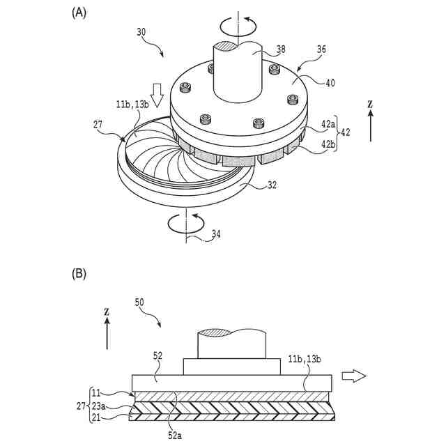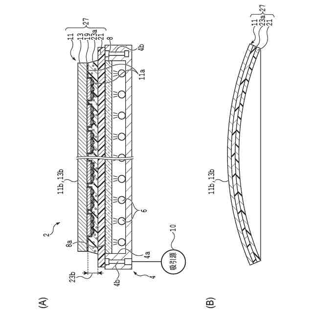 デバイスを薄型化及び軽量化するためには、デバイス単位に分割する前の半導体基板を薄化することが求められる。しかし、各デバイスは単結晶シリコンとは異なる材料で形成されている積層体を含み、このデバイスが半導体基板の表面に設けられていることに起因して、半導体基板には応力(即ち、残留応力)が生じていることがある。