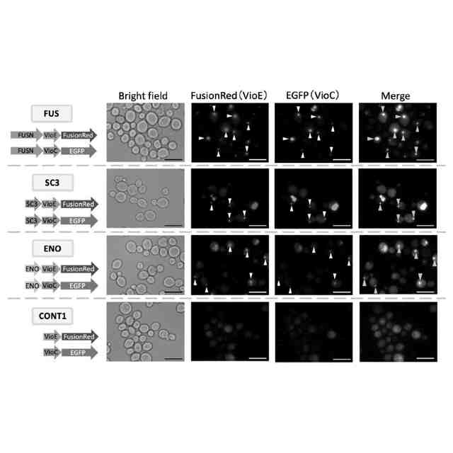 酵母において、解糖系酵素等が、低酸素条件下で、G-body(Glycolytic body)と呼ばれるタンパク質集合体を形成することが知られている(非特許文献1)。これまでに、例えば、解糖系酵素エノラーゼ(Eno2p)のN-末端アミノ酸配列(scENO(1~30))が低酸素条件下でのG-bodyの形成に寄与することが報告されている(非特許文献2)。また、酵母のピルビン酸キナーゼ(Cdc19p)のアミノ酸配列(例えば、217~243位のアミノ酸配列;SC3)についても自己集合能を有することが報告されている(特許文献1、非特許文献3)。これらの代謝酵素の集合体形成に関与するアミノ酸配列は、「MetaFos-tag(META(metabolic enzymes transiently assembling)body-forming peptide sequence tags)」と称されている。