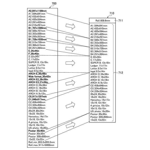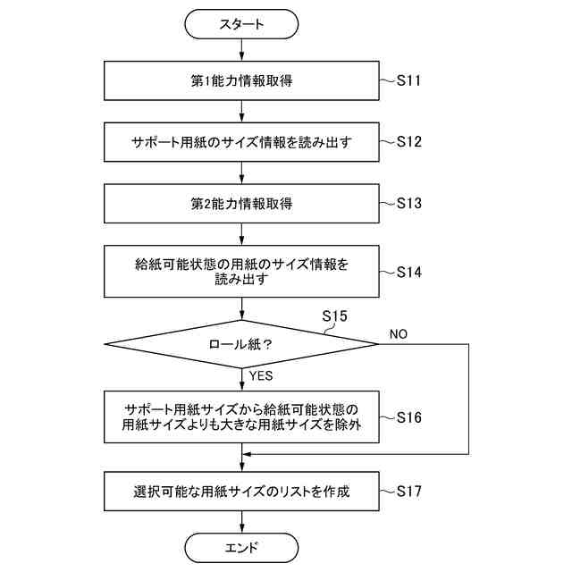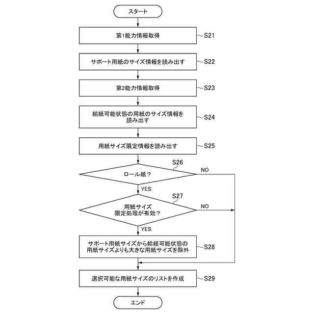 印刷装置の機種によっては、ロール紙を印刷用紙として使用可能なものがある。また、印刷装置の機種やOSの種類によっては、印刷設定が行われる際に、印刷装置が対応している全用紙サイズを印刷設定画面に表示するものがある。例えば印刷装置が、ロール紙を印刷用紙として使用可能で、かつ、印刷装置が対応している全用紙サイズを印刷設定画面に表示する場合、当該印刷設定画面は、全用紙サイズにロール紙の幅が含まれた画面となる。このような印刷設定画面では、印刷装置に例えばA3ロール紙(幅が297mmのロール紙)が設置された場合でも、ユーザは、A3ロール紙よりも幅が大きいA2サイズのカット紙や幅が420mmのロール紙を選択することができる。そして、A2サイズのカット紙が選択された状態で印刷が実行された際には、画像はA2サイズのカット紙に適した大きさで印刷されるため、A3ロール紙上では、ユーザが意図しないクリッピングによる画像欠損が生じるという問題がある。また、A3ロール紙を選択すべきところ、A2サイズのカット紙を選択することができてしまうため、印刷設定画面上での用紙選択が誤選択となるおそれがある。また、印刷装置に対するA3ロール紙からA2ロール紙への交換作業は、例えばA3サイズのカット紙をA2サイズのカット紙に交換する作業よりも容易ではない。