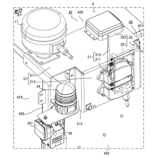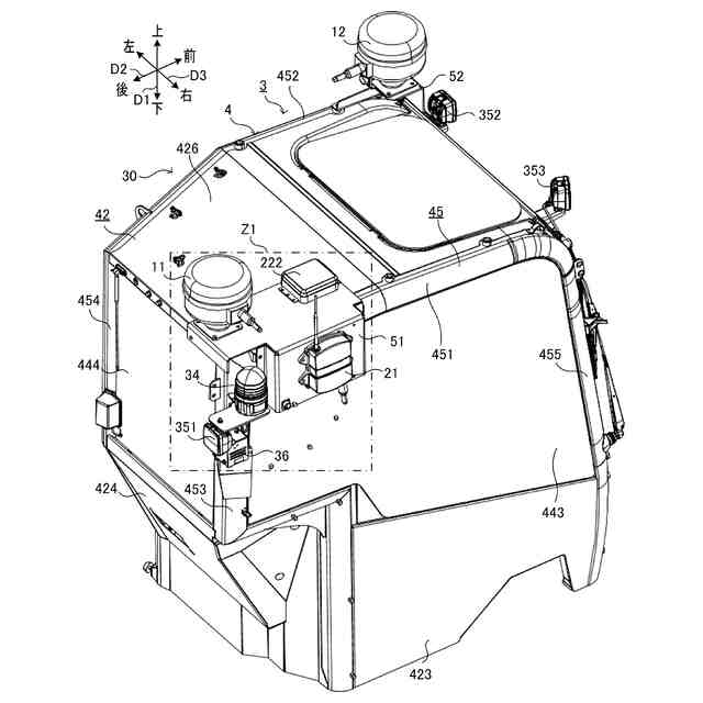 関連技術では、キャビンの上部にキャブガードが脱着可能に取り付けられ、複数のアンテナは、キャブガード上に取り付けられている。ここで、作業機(作業装置)に近い方のアンテナを、遠い方のアンテナより高く設置することで、作業機に近い方のアンテナが作業機の影響を受けて受信感度が低下することを防止する。