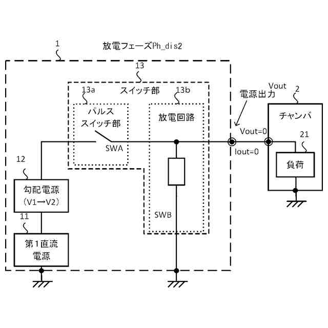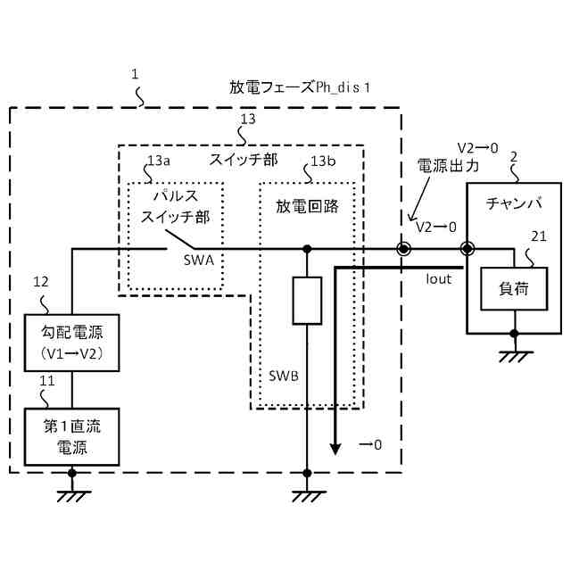 パルス電源装置が生成するパルス出力は、成膜処理やエッチング処理等のプラズマ処理に用いられる他、プラズマ処理に限らず種々の産業用装置に適用することができる。例えば、半導体デバイスのエッチング処理において、導体をプラズマ処理する際に基板の表面全体にわたって実質的に均一な負電圧を生成するために、接地に対して負の電圧が基板に印加される。