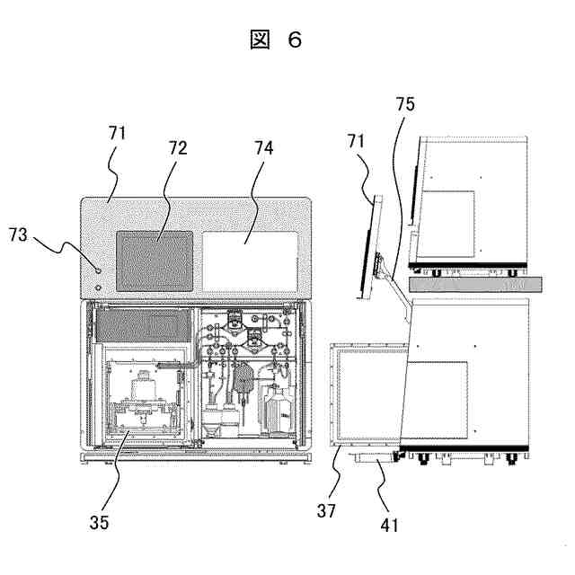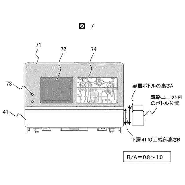 前記インキュベータと前記流路ユニットは横に並べて配置されており、該インキュベータと該流路ユニットの両方の前面の略全面を覆うことが可能な前面扉を有し、