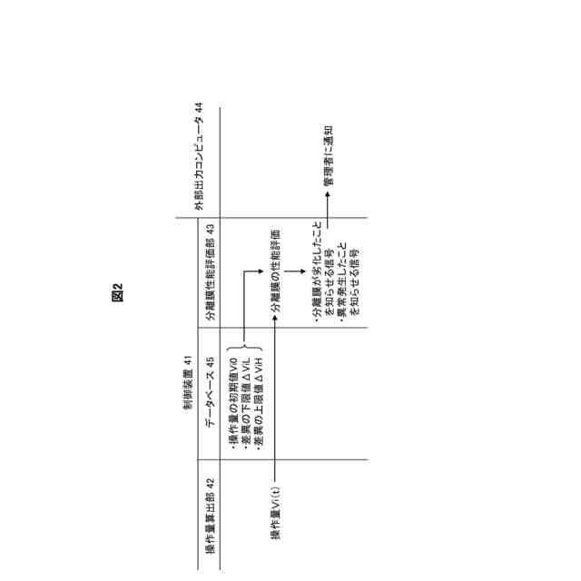 前記劣化診断装置は、さらに前記出力制御弁の操作量から現在時点でのガス分離膜の性能を計算するために用いるガス分離膜の劣化指標計算式を記憶するデータベースを備え、