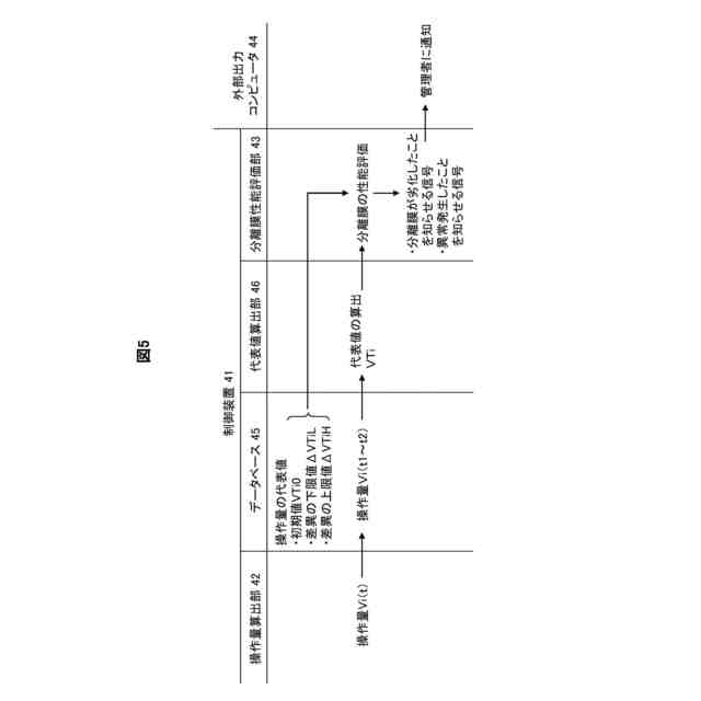 【解決手段】ガス分離システム1の劣化診断装置41は、特定ガスを選択的に透過する一つ以上のガス分離膜12を有し、ガス分離膜12の出力を出力制御弁22、23により制御するガス分離システム1の劣化診断装置41であって、前記劣化診断装置41は、前記ガス分離膜12の劣化により影響を受けるプロセス量を取り込む入力部42と、取り込んだ現在時点のプロセス量から前記ガス分離膜12の性能を評価する分離膜性能評価部43と、を備える。