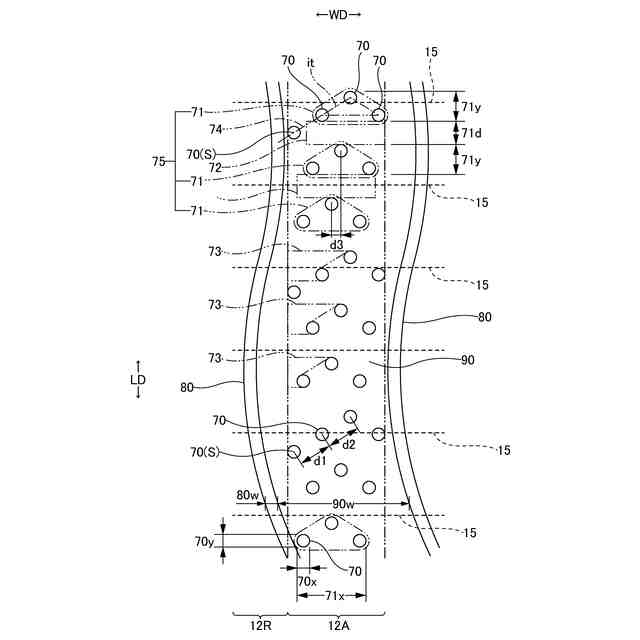 前記サイドシール領域における前後方向の一部又は全体にわたり、前記単位点群セットが前後方向に間隔を空けて繰り返し設けられている、