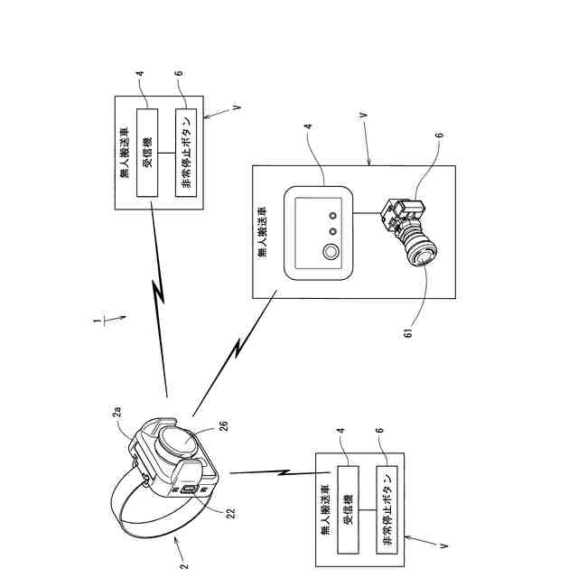 そこで、無人搬送車や産業用ロボットなどの所定機器に設けた非常停止ボタンを、作業者が装着したウェアラブル端末で遠隔操作する技術が提案されている(特許文献1参照)。
