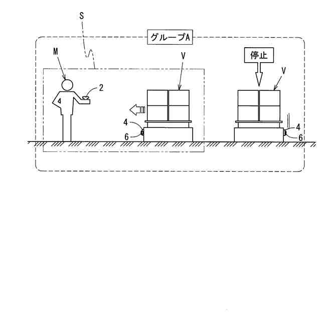 しかしながら、例えば無人搬送車の場合、作業者が無人搬送車を追いかけて非常停止ボタンを押下する必要があるため、非常停止ボタンが押し難いだけでなく、非常停止に時間を要するという問題がある。