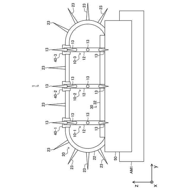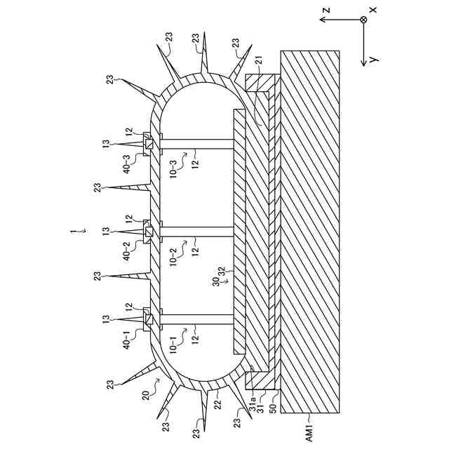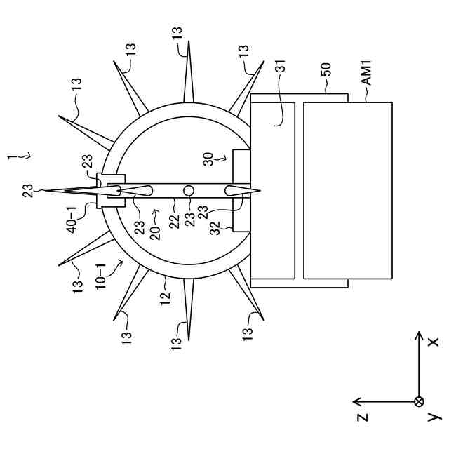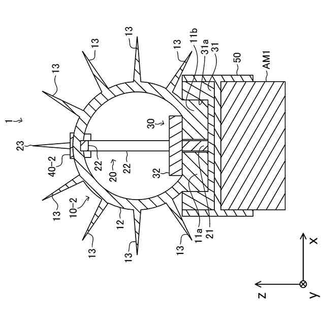 ところで、上記鳥害防止装置は、1つの基準面においてのみ突起部が存在するため、鳥が忌避する空間が比較的小さいという課題があった。そこで、複数の鳥害防止装置を、回転部が互いに交差するように組み合わせることにより、鳥が忌避する空間を大きくすることが考えられる。