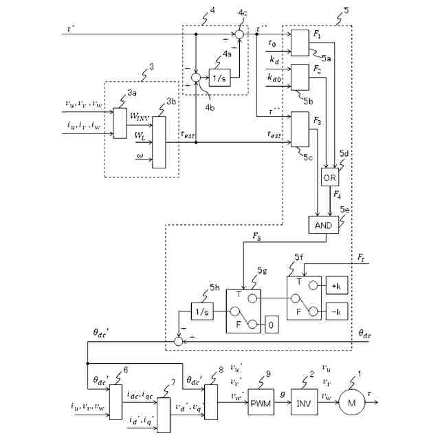 【解決手段】電動機1を駆動する電力変換装置2の制御装置において、電動機1のトルク推定値を演算するトルク推定部3と、電動機1の回転位置の検出値を補正する位相補正部5と、を備える。電動機1のトルク指令値τ