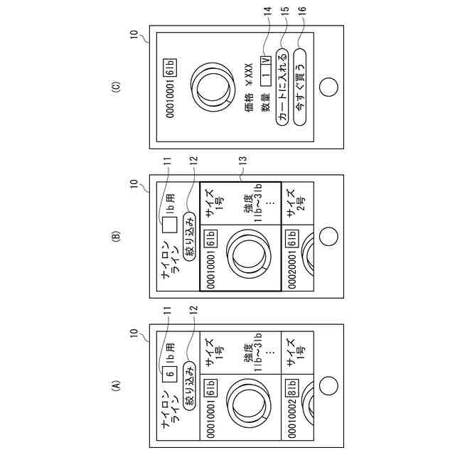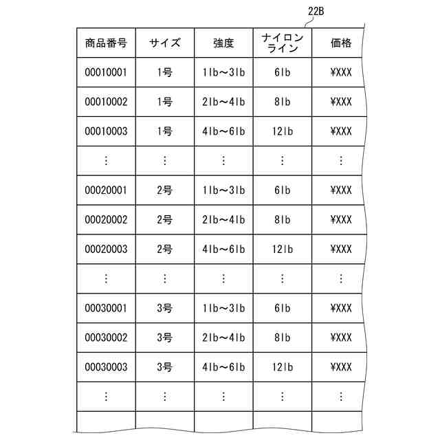 前記記憶部は、さらに、前記スプリットリングの商品ごとに、ルアーサイズ情報またはフックサイズ情報を対応付けて商品テーブルに記憶し、
