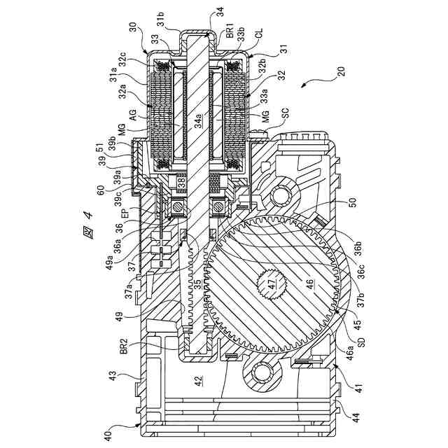 サンルーフモータの回転軸の軸方向に沿う断面図である。