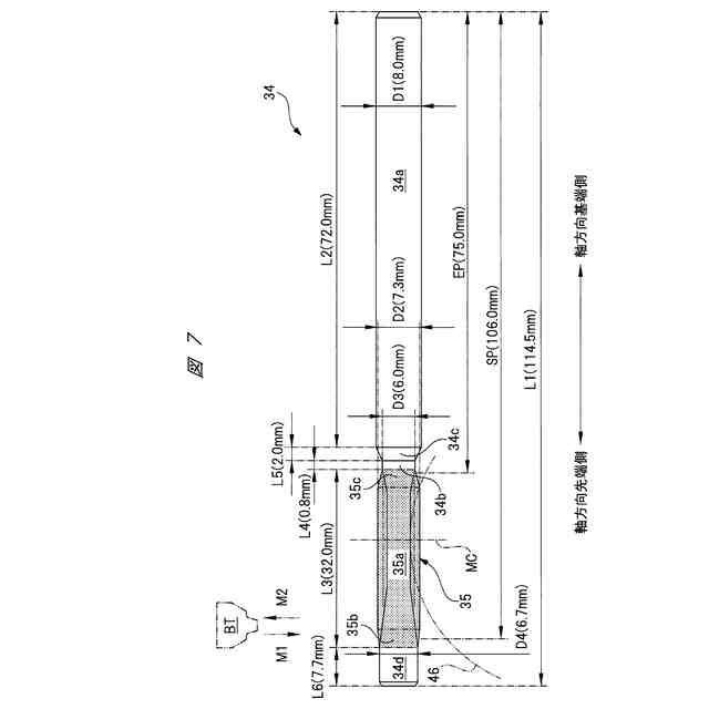 前記本体部の軸方向他側に接続され、前記本体部から離れるに連れて先細り形状となった第2テーパ部と、