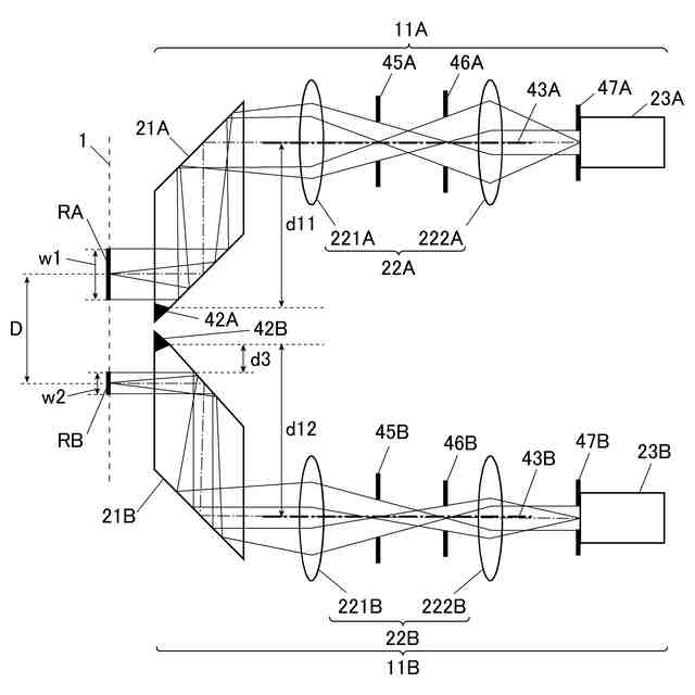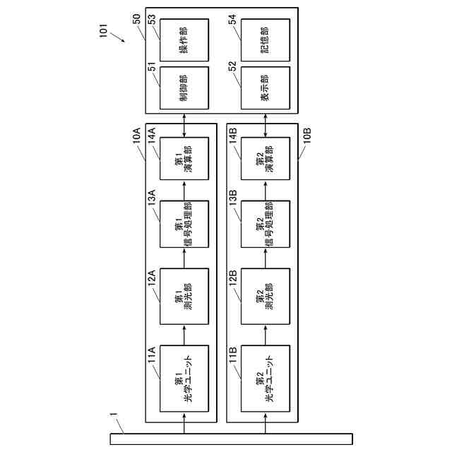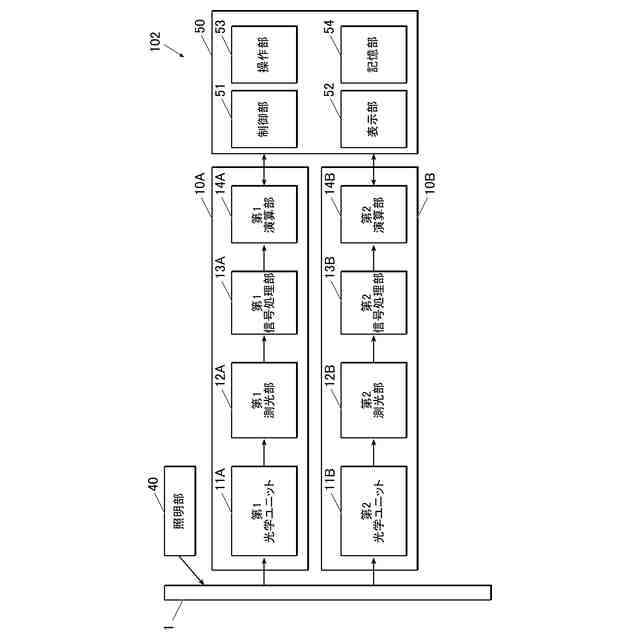 【解決手段】互いに隔てた複数の計測領域をそれぞれ計測する少なくとも二つのプローブを備えた光計測装置において、前記二つのプローブは、それぞれ、光学部材と、レンズ系と、導光部と、測光部とを有し、前記光学部材は、前記計測領域からの光を偏向し、前記二つのプローブにおいて、前記レンズ系の光軸間隔は、前記計測領域の中心間距離よりも広く、前記二つのプローブの前記計測領域の面積は、互いに異なり、前記二つのプローブの計測角は、同じである。