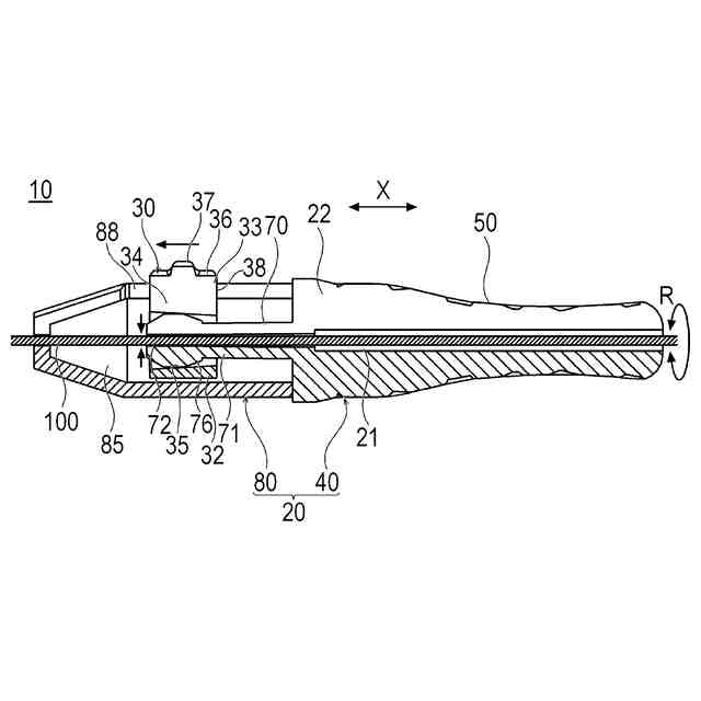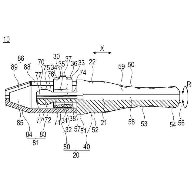 グリップ部と、前記グリップ部から先端方向に延びて前記本体内腔に位置する前記スライダーの前記貫通孔内に配置されるチャック部と、を備えるシャフト部と、
