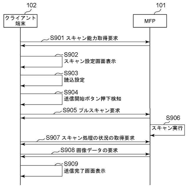 また、クライアント端末の一例であるスマートフォンには、ソフトウェアプログラムとして、スキャンアプリケーション(以下、スキャンアプリと呼ぶ)がインストールできるようになっている。特許文献1では、スマートフォンにインストールされたスキャンアプリが、MFPから取得したスキャナ能力に応じた設定画面を提供している。そして、ユーザがその設定画面で設定した内容に従い、スマートフォンからMFPに対してスキャン要求が送信されている。