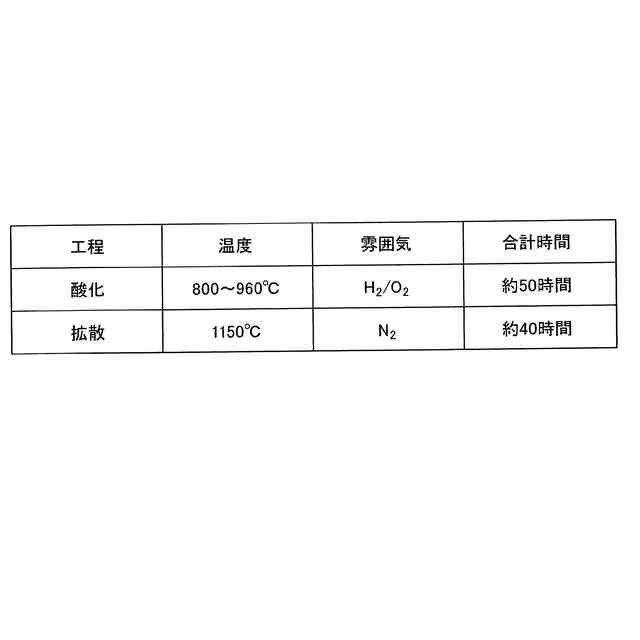 図8の酸化工程及び拡散工程の熱処理条件例を示す表である。