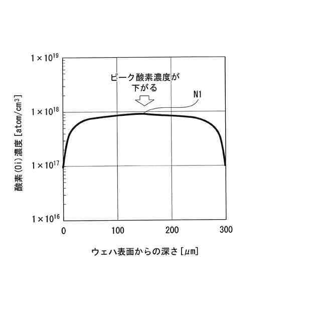 特許文献2には、350℃以上、500℃以下のアニール熱処理により、シリコン基板中の酸素が活性化してドナーとなること、及び、シリコン基板の表面側に形成されるMOS構造形成の際の熱処理により、表面側及び裏面側から酸素原子が外方拡散し、表面及び裏面から45μm程度の深さまで酸素濃度が減少した状態で酸素をドナー化することが開示されている。特許文献3には、磁場印加チョクラルスキー(MCZ)法が開示されている。