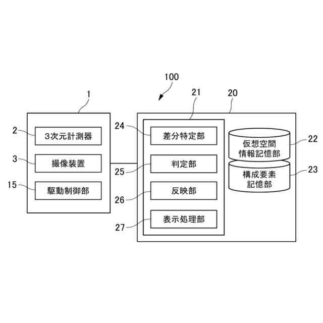 前記反映部は、前記差分情報が示す要素について前記判定部が前記構造物の前記構成要素であると判定した場合に、前記差分情報に対応する前記構成要素を、前記仮想空間情報記憶部に記憶される前記仮想空間情報に反映させる