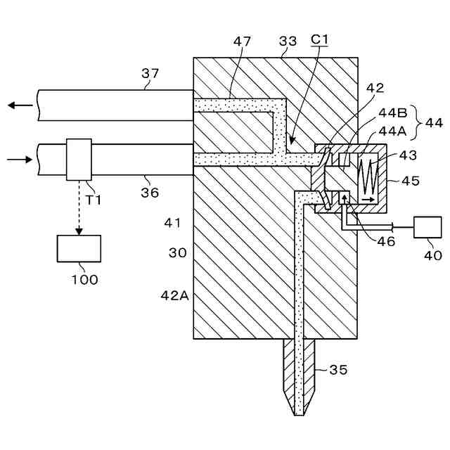ところで一般的に、ウエハWを液処理する液処理装置については、使用する処理液毎に、ノズル及び当該ノズルに処理液を供給するための流路系が設けられる。流路系は例えば、配管などの流路形成部材を組み合わせて構成され、ポンプ、フィルタ、バルブなどの各種の部材及び機器が設けられる。上記の流路系の一部において、処理液が局所的に加熱されるおそれが有る。具体的な一例を挙げておくと、バルブを開閉するための電気機器類がいずれかの流路系を構成する配管の近くに配置されたとする。そして、装置の連続稼働によって当該電気機器類の周囲に蓄熱される。その熱によって配管が局所的に加熱され、内部の処理液も加熱されることが考えられる。