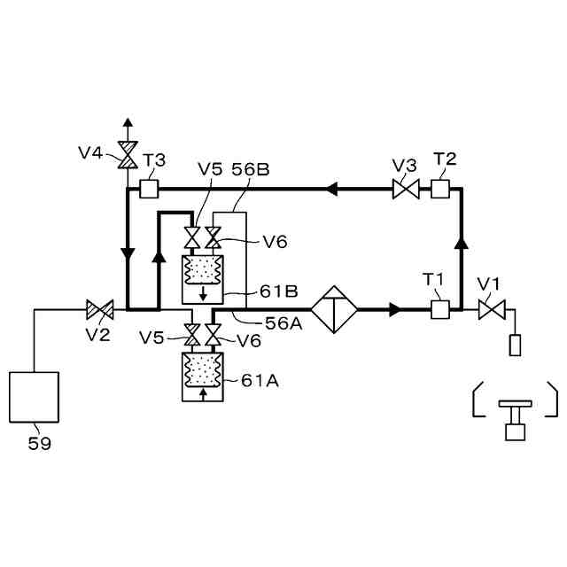 前記流路系でのシンナーの通流状態を示す説明図である。
