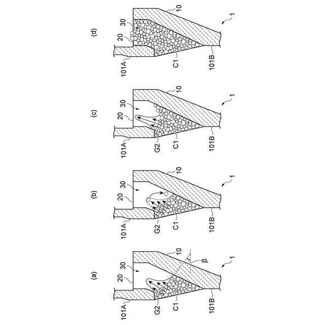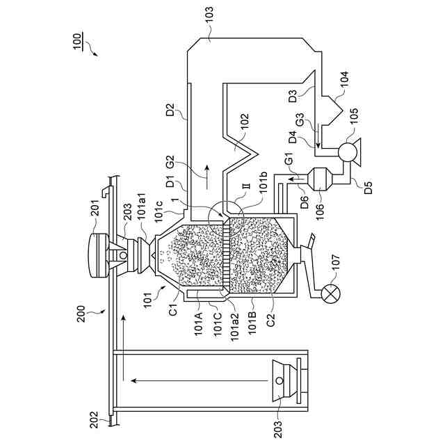 そのため、特許文献1では、排気口において、傾斜角が互いに異なる背面が連接された傾斜面を採用している。この場合、排気口から流出する赤熱コークスの量が、排気口に流入する赤熱コークスの量よりも大きくなり、排気口の閉塞が抑制されるとされている。また、予備室と冷却室との直径差を大きくすることなく、当該直径差が維持された状態で排気口の閉塞が抑制されるので、予備室の小径化を補うための予備室の高さ方向への拡大や、支持壁が長大化することによるコストアップが抑制されるとされている。