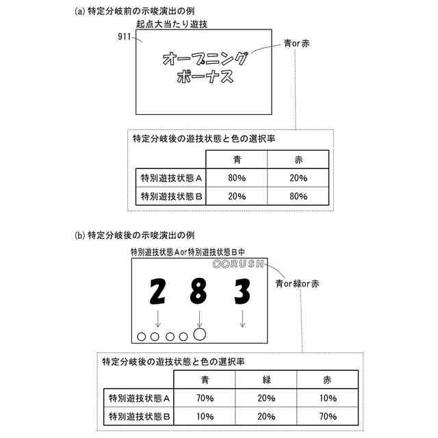 遊技領域902には、メインの表示装置である表示装置91、始動領域904、大入賞領域906、アウト口などが設けられている。表示装置91の表示領域911は、遊技盤90に形成された開口901を通じて視認可能な部分である。また、遊技領域902には、流下する遊技球が衝突することにより遊技球の流下態様に変化を与える障害物としての遊技釘が複数設けられている。遊技領域902を流下する遊技球は、遊技釘に衝突したときの条件に応じて様々な態様に変化する。
