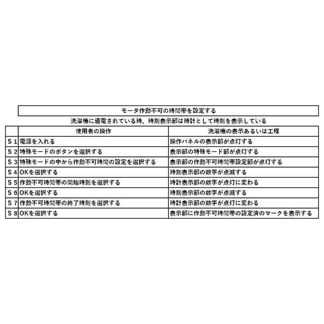 モータを作動させることのできない時間帯を設定することのできる手段を備えた洗濯機。