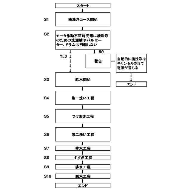 【課題】外槽に貯水した水に内槽を浸漬するつけおき工程を含む、槽の洗浄の自動運転を選択した場合、夜間や早朝にモータが回転してしまうことがあり、使用者は時刻や時間を計算する必要があった。