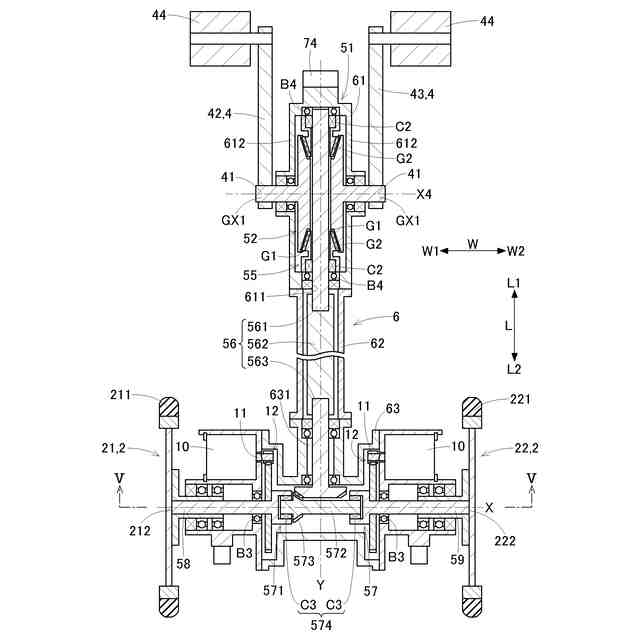 前記駆動輪支持部は、前記第2伝動軸及び前記第3伝動軸のそれぞれを回転自在に支持するように構成され、