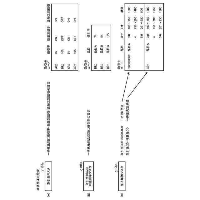 取引先、品目、取引先別品目別値引率を関連付けて登録した取引先別品目別値引率マスタと、