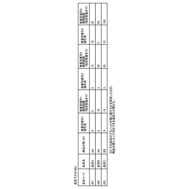 品目、数量の適用範囲、数量別値引率を関連付けて登録した品目マスタと、