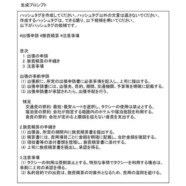 文章、画像、動画及び音声の少なくともいずれかを含むコンテンツに対してハッシュタグを生成する生成プロンプトを受付し、