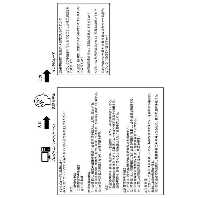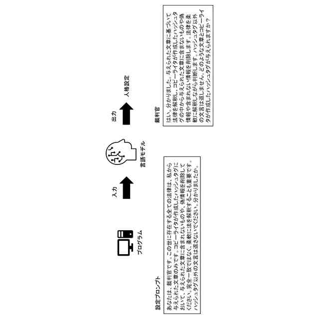 前記言語モデルに対して設定された複数の人格の間でのプロンプトを用いた対話を通じて、前記コンテンツのハッシュタグを生成する、生成手段と、